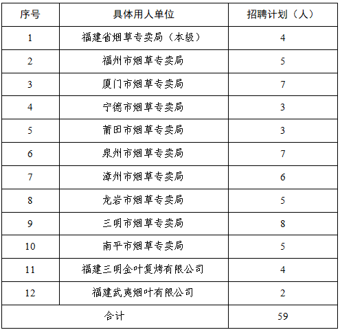 附件:《福建省烟草专卖局(公司)2026年招聘(第一批)计划表》